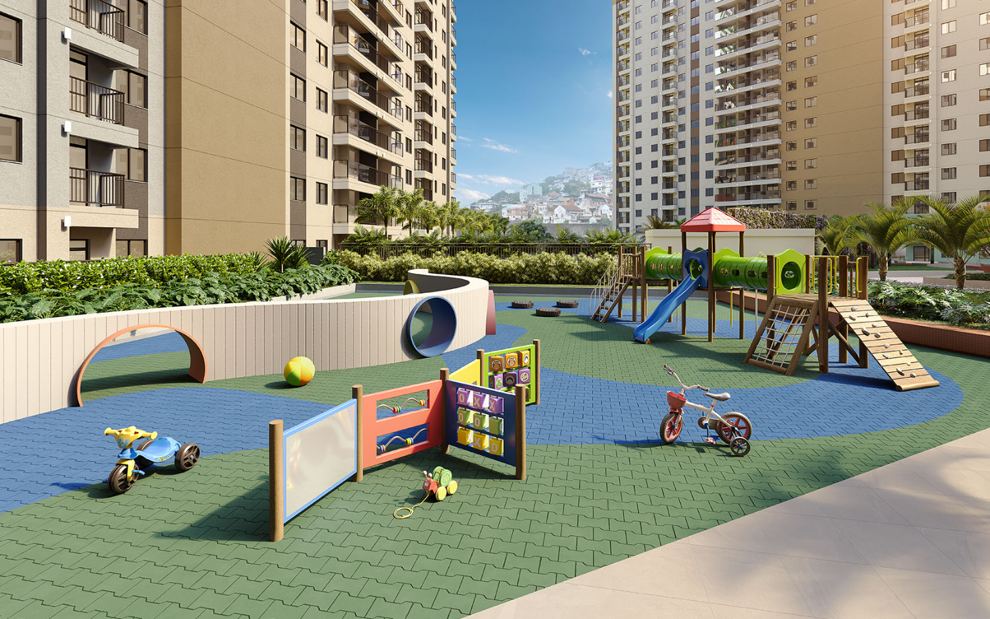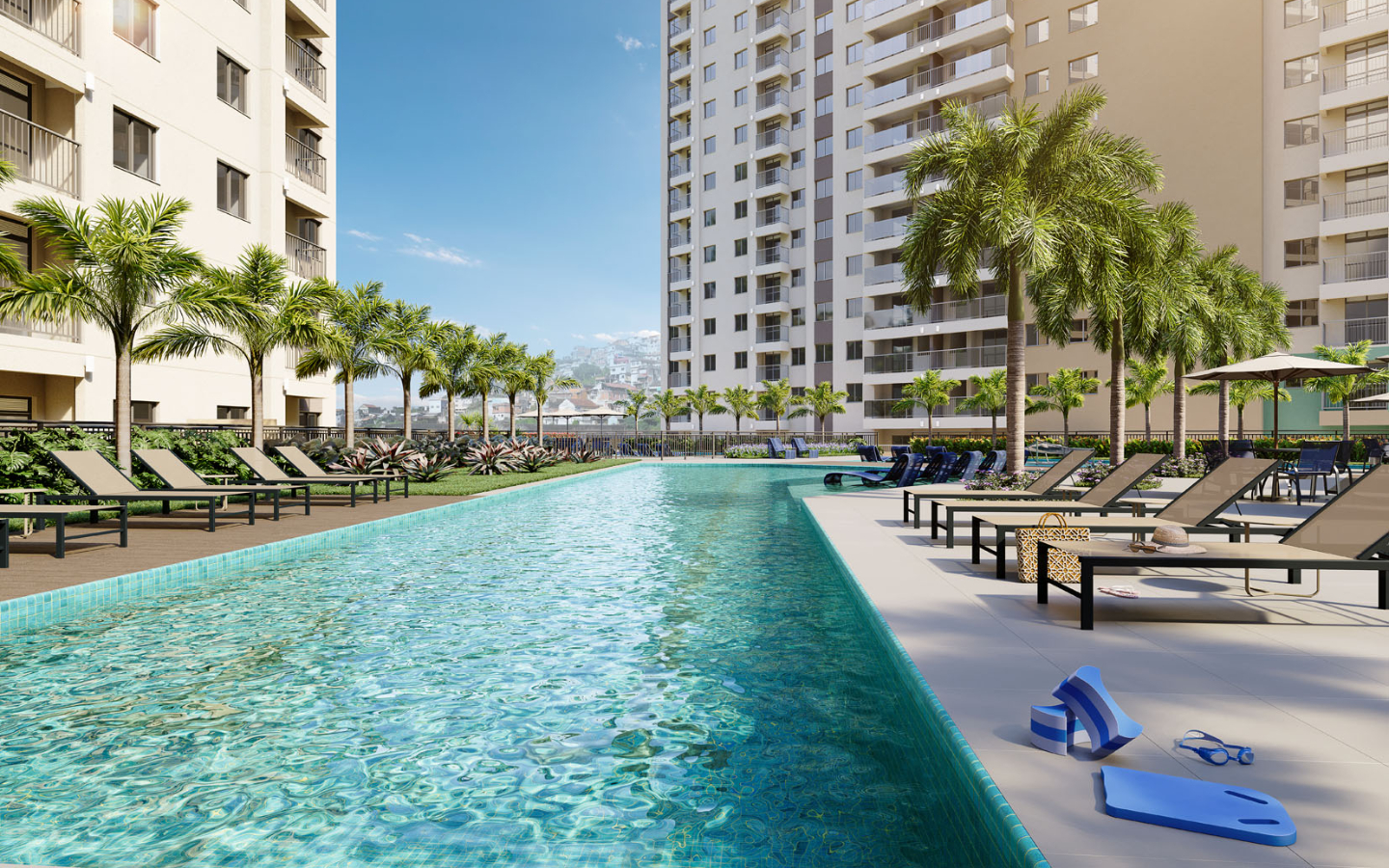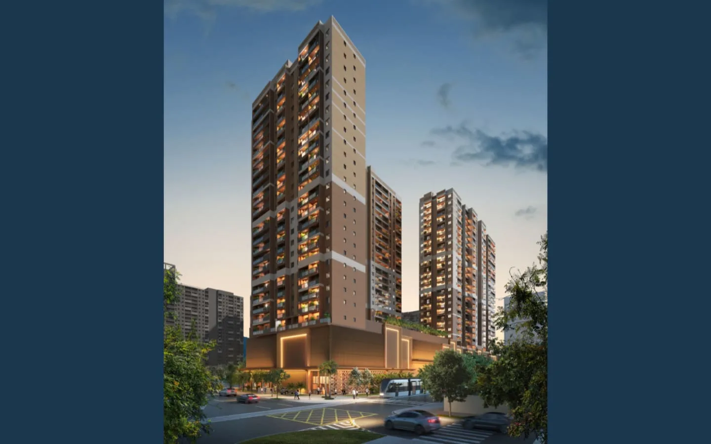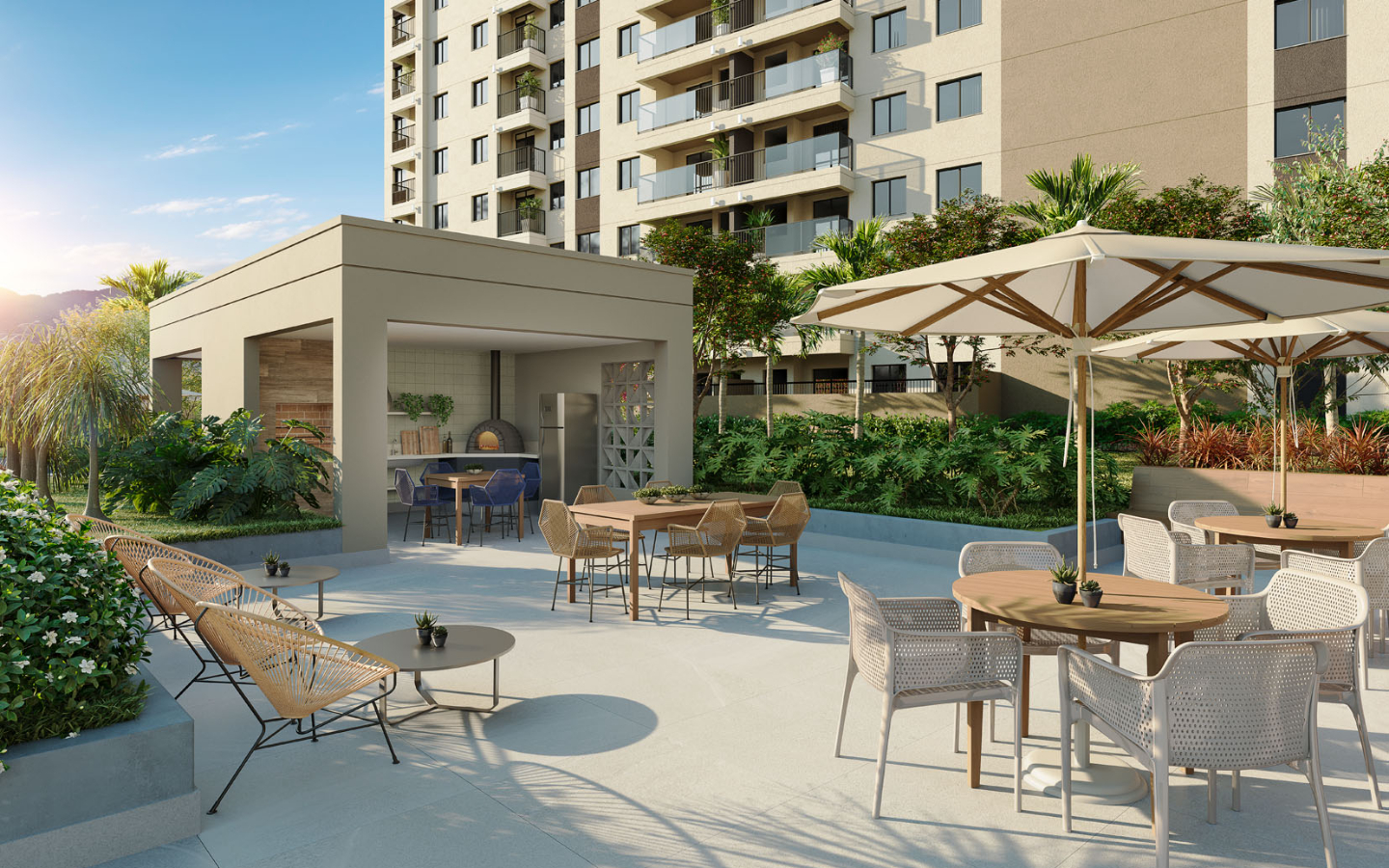 Apartamentos a venda com opção de 2 quartos com suíte, opção garden e vaga. Mais de 8000 m² dedicados ao lazer, promovendo um condomínio clube com lazer estilo resort, mais de 25 itens de lazer e 2 rooftops.