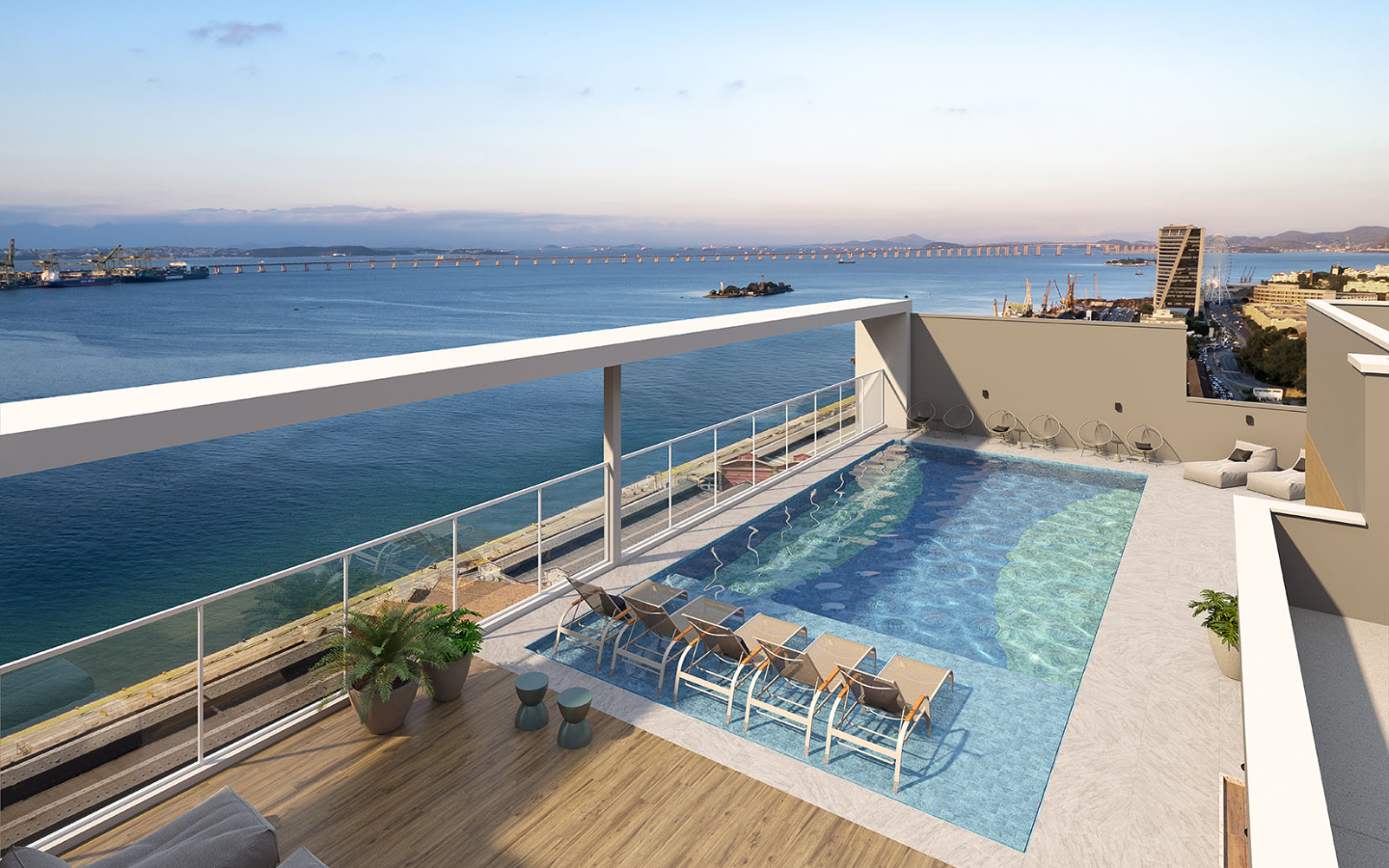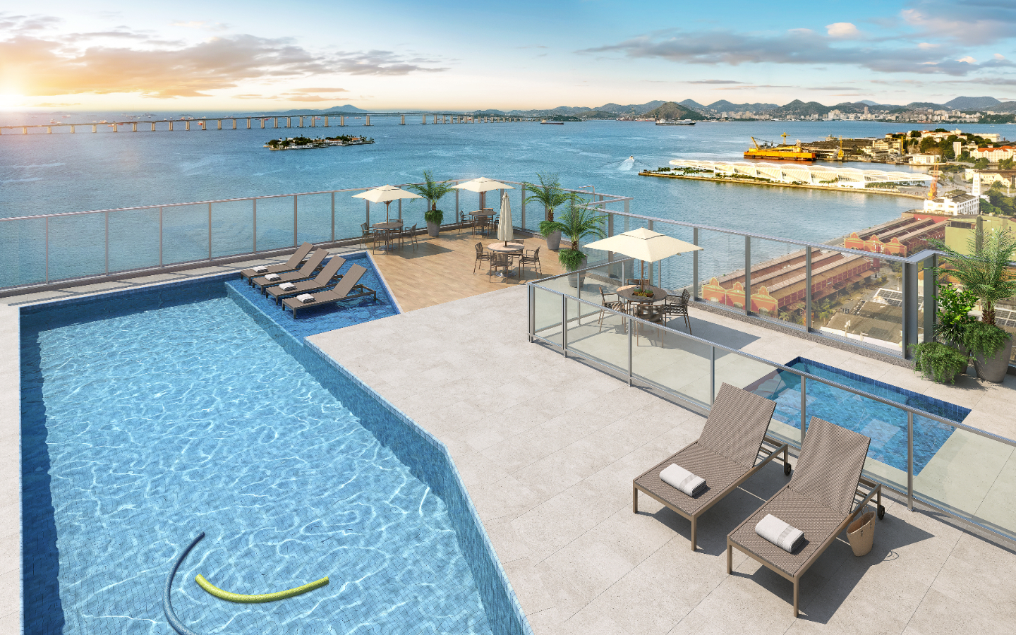 Studio, 1, 2 e 3 quartos com lazer completo no rooftop. Além de morar a 200m da Rodoviária Novo Rio, no coração do Porto Maravilha, o lançamento Cury Baía oferece uma vista deslumbrante da Baía de Guanabara.